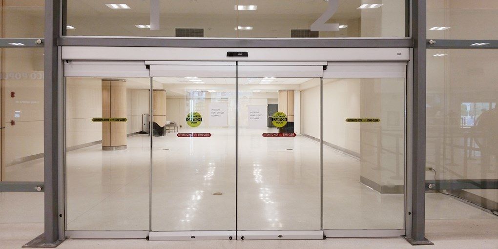 Противопожарная безрамная дверь со стеклом в бизнес центр в Лобне