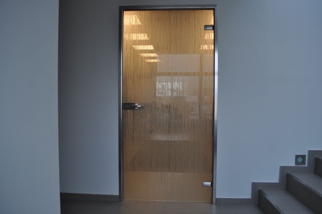 Противопожарная безрамная дверь со стеклом в БЦ в Лобне