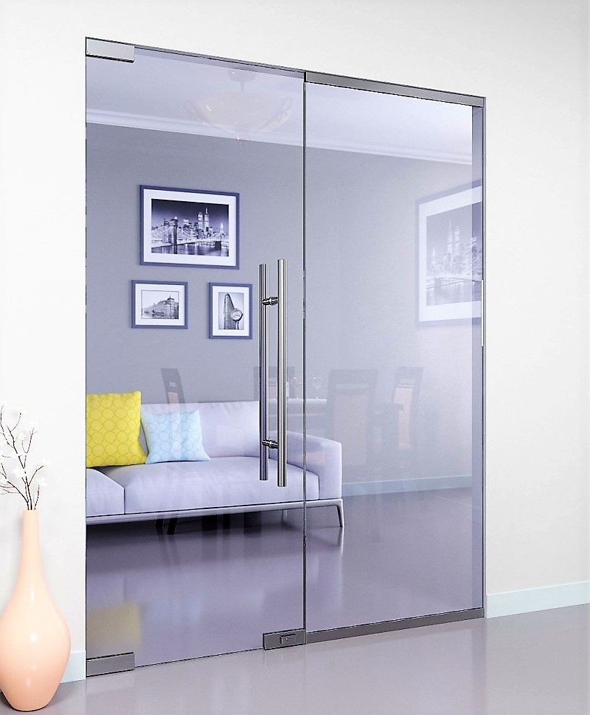 Противопожарная безрамная дверь со стеклом в гостиную в Лобне
